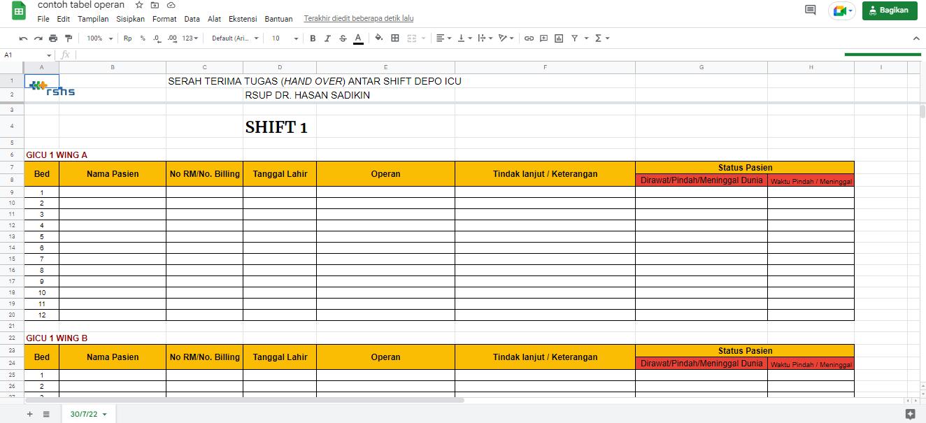 Google Spreadsheet dalam kegiatan serah terima tugas antar shift ?