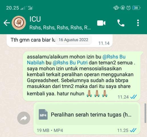 sehingga dapat mengoptimalkan pelayanan dari segi waktu yang menjadi lebih efisien dalam membuat laporan serah terima tugas setiap shift nya. Selain dari sisi kemudahan, pelaksanaan kegiatan ini memberikan pengetahuan baru untuk seluruh petugas bahwa digitalisasi dapat dimanfaatkan secara baik untuk memberikan pelayanan yang lebih baik.