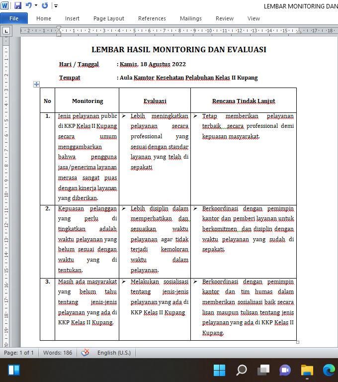 Kegiatan Minggu Ke- III ( 01 s/d 05 Agustus 2022)