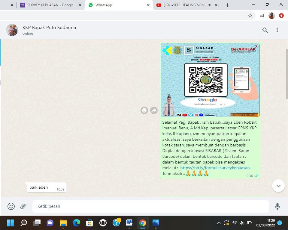 2. Sosialisasi Digitalisasi Survey Kepuasan Masyarakat kepada petugas danmasyarakatuntukmengaksesatau mengisi (Kolaboratif)