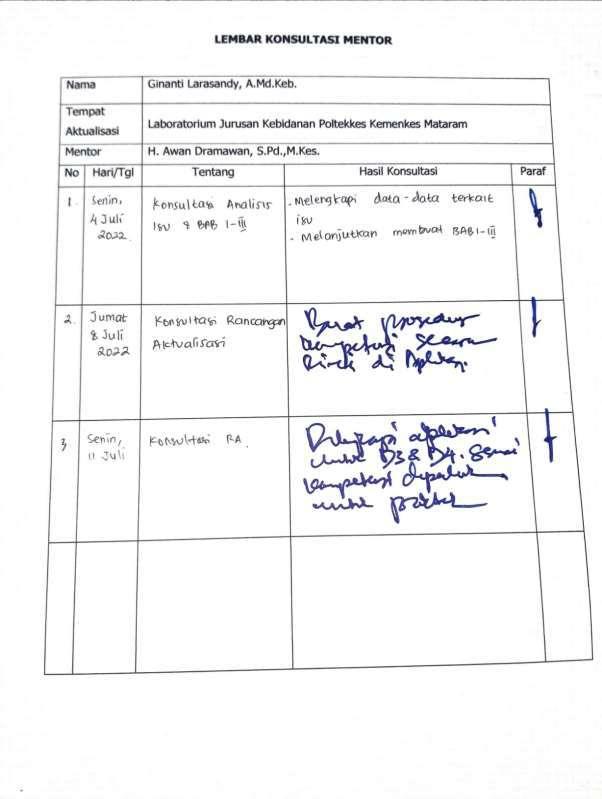 1. Penulis mampu mengidentifikasi isu yang terjadi pada satuan kerja, mengangkat dan menetapkan sebuah core isu di Laboratorium Jurusan Kebidanan Poltekkes Mataram