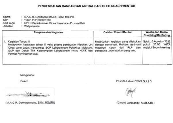 6. A.A.G.R. Darmasemaya, SKM, MScPH selaku Coach yang telah memberi bimbingan petunjuk teknik dan motivasi dalam penyusunan laporan aktualisasi ini.