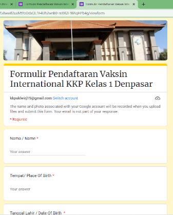 Formulir Pendaftaran vaksin international Menggunakan Form Manual
