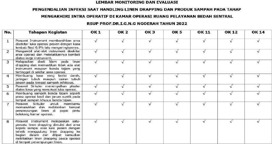 Optimalisasi Pengendalian Infeksi Saat Handling Linen Drapping Dan Produk Sampah Pada Tahap Mengakhiri Intra Operatif Di Kamar Operasi Ruang Pelayanan Bedah Sentral RSUP