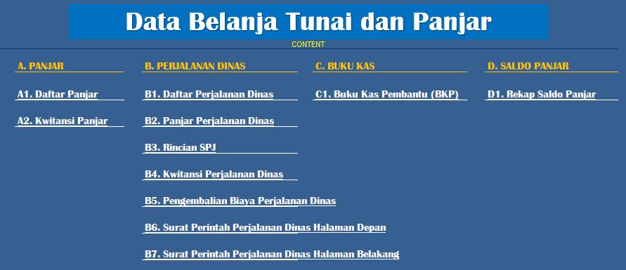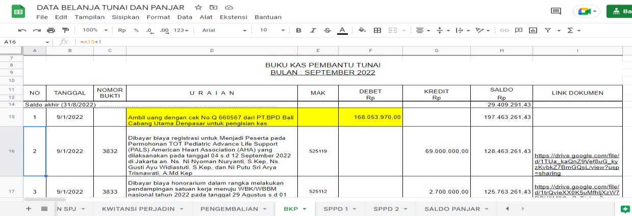 pada platform google spreadsheet, data buku pembantu tunai dan panjar