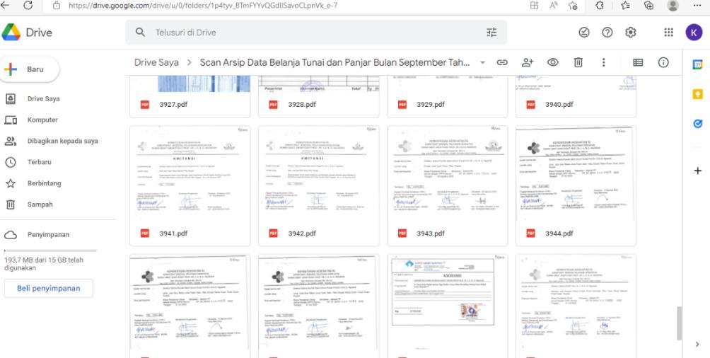 Gambar 5.18 Penyimpanan arsip data belanja tunai dan panjar pada platform googledrive....77