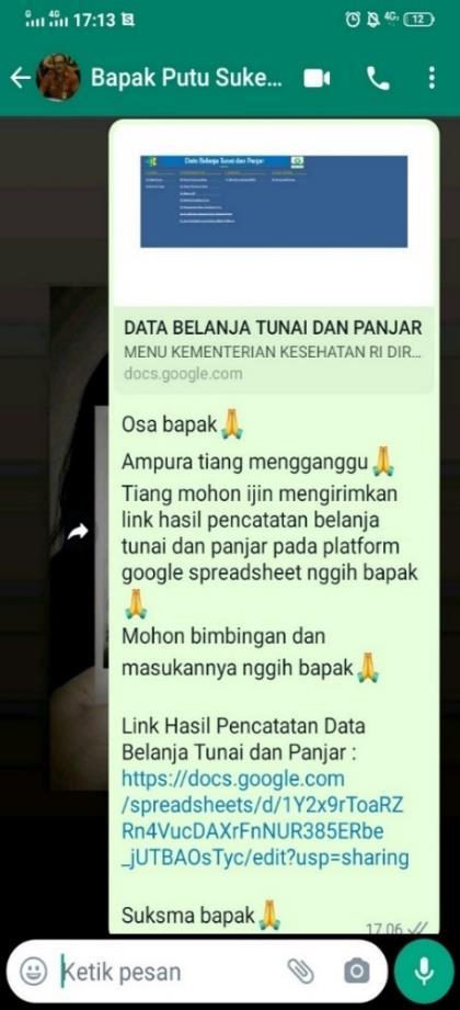Dengan adanya pelaksanaan uji coba penginputan data belanja tunai dan panjar menggunakan platform google spreadsheet, saya telah berkontribusi dalam pencapaian visi RSUP Prof. Dr. I. G. N.