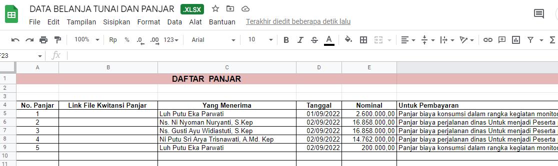 pembantu tunai dan panjar. Melalui penggunaan platform google spreadsheet, petugas panjar tidak perlu mengirimkan laporan harian