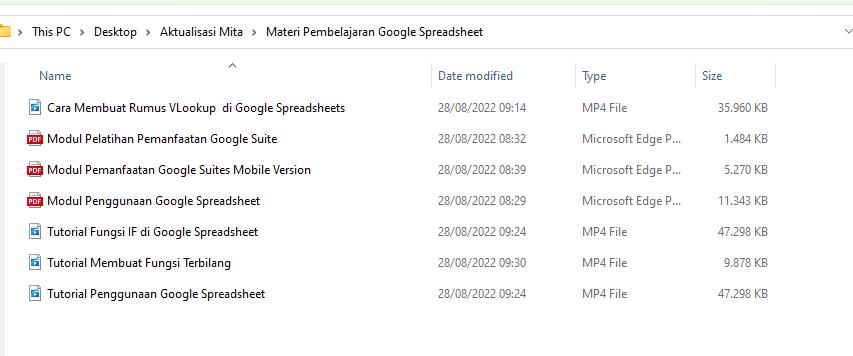 Gambar 5.1 Modul pembelajaran penggunaan platform googlespreadsheet..........................61