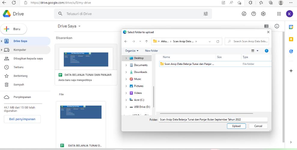 Gambar 5.17 Kegiatan upload softcopy arsip data belanja tunai dan panjar ke link penyimpanan daring.............................................................................................................................77