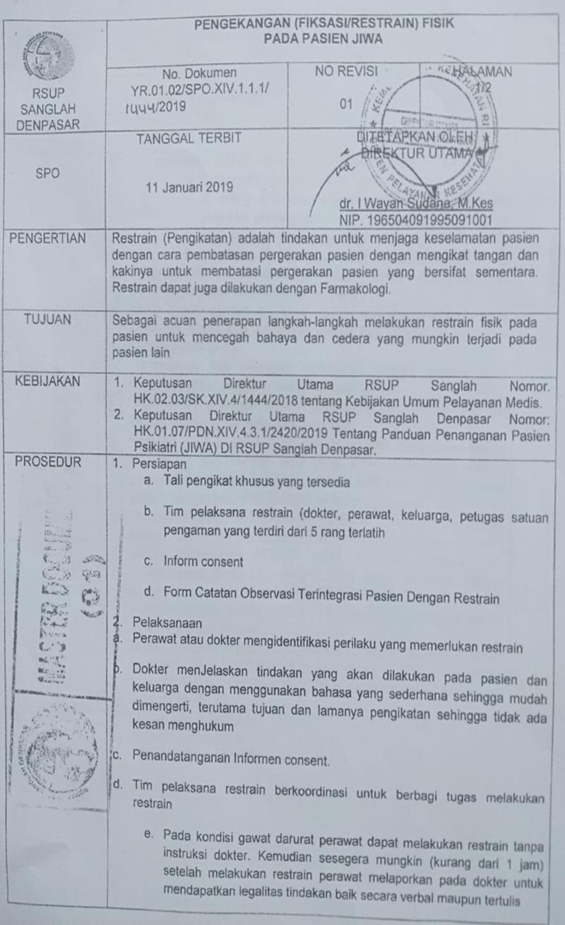 Keputusan Direktur Utama RSUP Sanglah Nomor HK.01.07/PDN.XIV.4.3.1/2420/2019Tentang PanduanPenangananPasienPsikiatri(Jiwa)DiRSUPSanglahDenpasar.