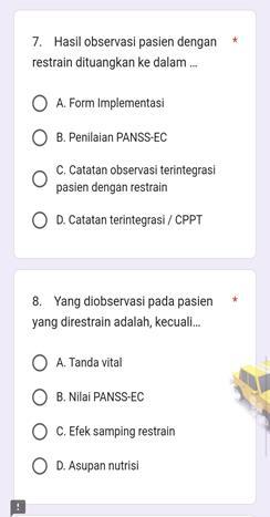 d. Kegiatan keempat yaitu melakukan evaluasi pemahaman perawat tentang video dan poster tentang restrain serta checklist pemantauan pasien restrain yang telah menerapkan nilai-nilai dasar BerAKHLAK yaitu Berorientasi Pelayanan, Akuntabel, Kompeten, Harmonis dan Loyal. Selain itu, kegiatan ini sejalan dengan Visi RSUP Prof. DR.I.G.N.G. Ngoerah yaitu Menjadi Rumah Sakit Unggul dan Mandiri Tahun 2024 dan misi Menyelenggarakan Pelayanan Kesehatan Yang Paripurna, Mandiri dan Terjangkau serta memberi penguatan pada nilai-nilai organisasi yaitu Profesional, Tat Twam Asi dan Efektif.