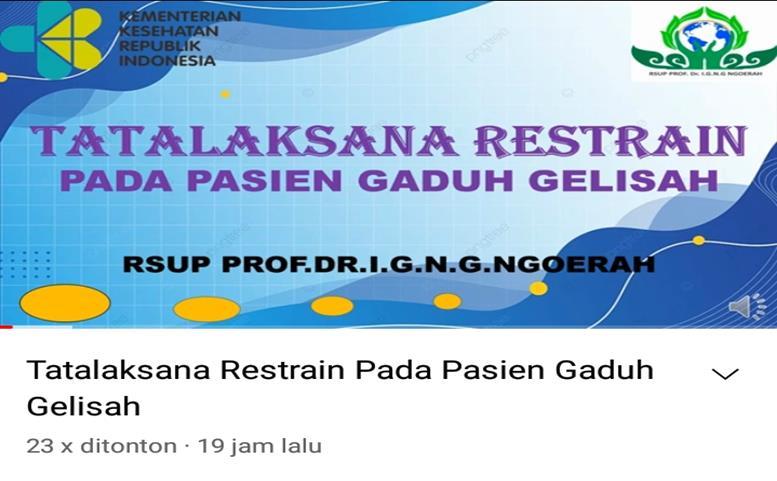Prof.Dr.I.G.N.G.Ngoerah” yaitu “optimalisasi pemberian edukasi pencegahan gaduh gelisah dan tatalaksana restrain pada pasien gaduh gelisah di rumah pada pasien post rawat inap di Ruang Anggrek RSUP Prof.Dr.I.G.N.G.Ngoerah”. Edukasi yang diberikan melalui media video dan dengan adanya edukasi melalui media video ini saya sebagai