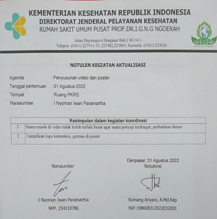 Selain itu, kegiatan ini sejalan dengan Visi RSUP Prof. DR.I.G.N.G. Ngoerah