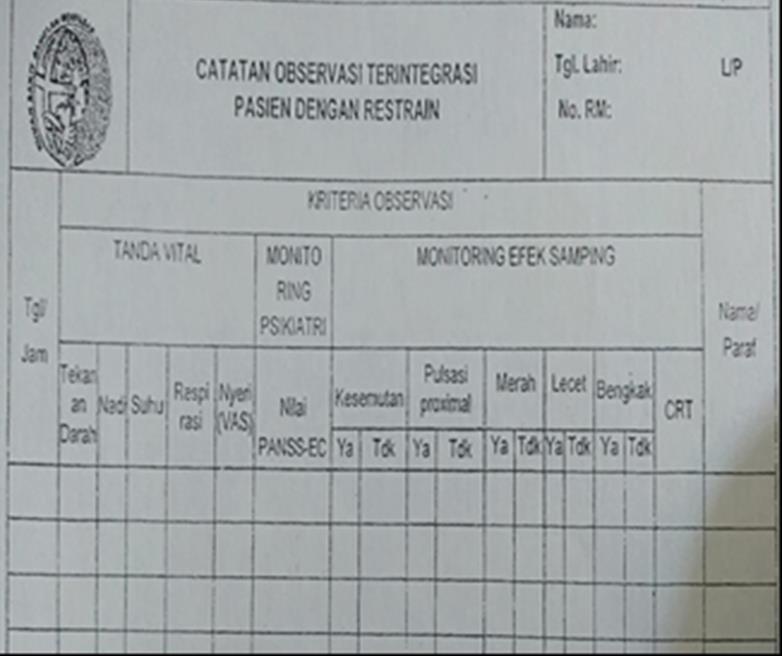 Selain itu didapatkan hasil peningkatan kemampuan petugas dalam mengimplementasikan tatalaksana restrain yaitu dari pasien direstrain dengan