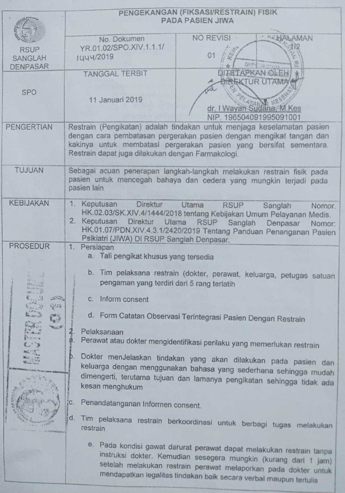 OPTIMALISASI KESIAPAN PERAWATAN PASIEN PSIKIATRI DENGAN RESTRAIN