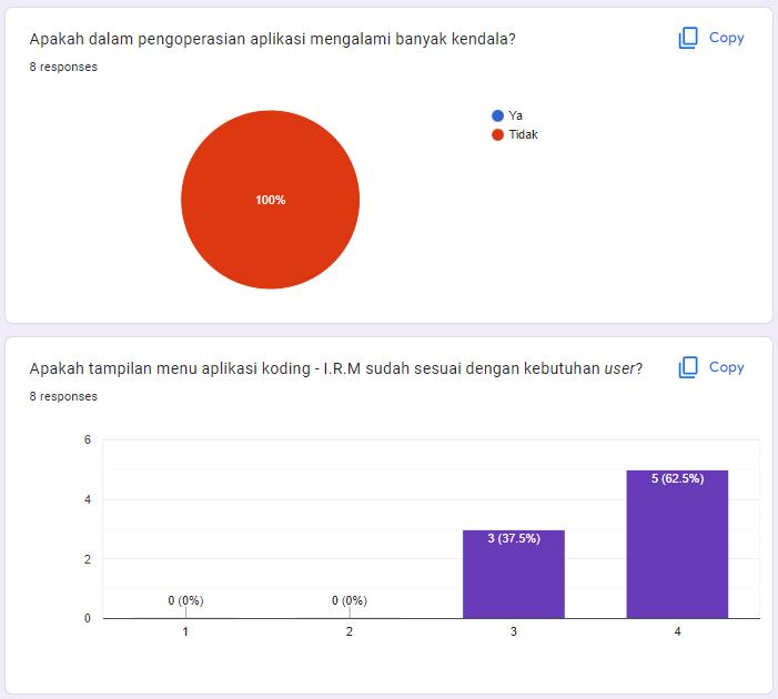 Pada kegiatan terakhir dalam aktualisasi dilakukan dengan melakukan evaluasi penggunaan aplikasi melalui kuesioner menggunakan Google Form dengan hasil evaluasi kemudian menjadi acuan dalam pembuatan laporan pelaksanaan aktualisasi penyediaan aplikasi laporan petugas koding di Instalasi Rekam Medis RSUP Prof. Dr.