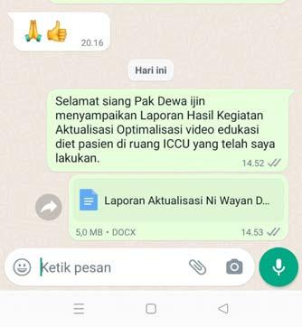 3. Kepala Instalasi Pelayanan Jantung Terpadu DR. dr. Bagus Ari Pradnyana DS. Sp.JP(K) yang telah memberikan ijin untuk melakukan kegiatan aktualisasi di ruang ICCU yang telah saya susun