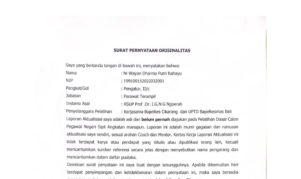 5. Bapak NS. I Putu Artawan, S.Kep selaku Mentor yang senantiasa memberikan bimbingan dan masukan dalam penyusunan laporan aktualisasi ini