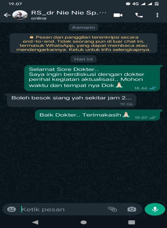 vii Gambar 33. Tangkapan Layar Meminta Izin Diskusi............................................64 Gambar 34. Dokumentasi Diskusi Tentang Materi Sosialisasi 64 Gambar 35. Dokumentasi PPT Materi Sosialisasi.................................................65 Gambar 36. Tangkapan Layar Undangan Sosialisasi 65 Gambar 37. Daftar Hadir Sosialisasi ..................................................................66 Gambar 38. Dokumentasi Sosialisasi Dengan Staff Laboratorium.........................67 Gambar 39. Dokumentasi Sosialisasi Dengan Staff Lain ......................................67 Gambar 40. Tangkapan Layar Konfirmasi Dengan IAPP 70 Gambar 41. Dokumentasi Lembar Koordinasi.....................................................74 Gambar 42. Daftar Hadir Fasilitator dan Narasumber..........................................75 Gambar 43. Daftar Hadir Pasien .......................................................................76 Gambar 44. Dokumentasi Sosialisasi Kepada Pasien...........................................77 Gambar 45. Dokumentasi Evaluasi Penggunaan Video Edukasi............................83 Gambar 46. Dokumentasi Testimoni Penggunaan Video Edukasi .........................85