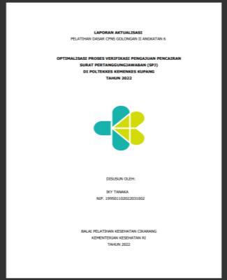 Dapat digunakan sebagai tambahan informasi dan bahan referensi bagi peserta latsar CPNS di Bapelkes Cikarang yang akan membuat aktualisasi terkait dengan optimalisasi proses pengajuan surat pertanggungjawaban (SPJ) dan kelengkapan dokumen data dukungnya.