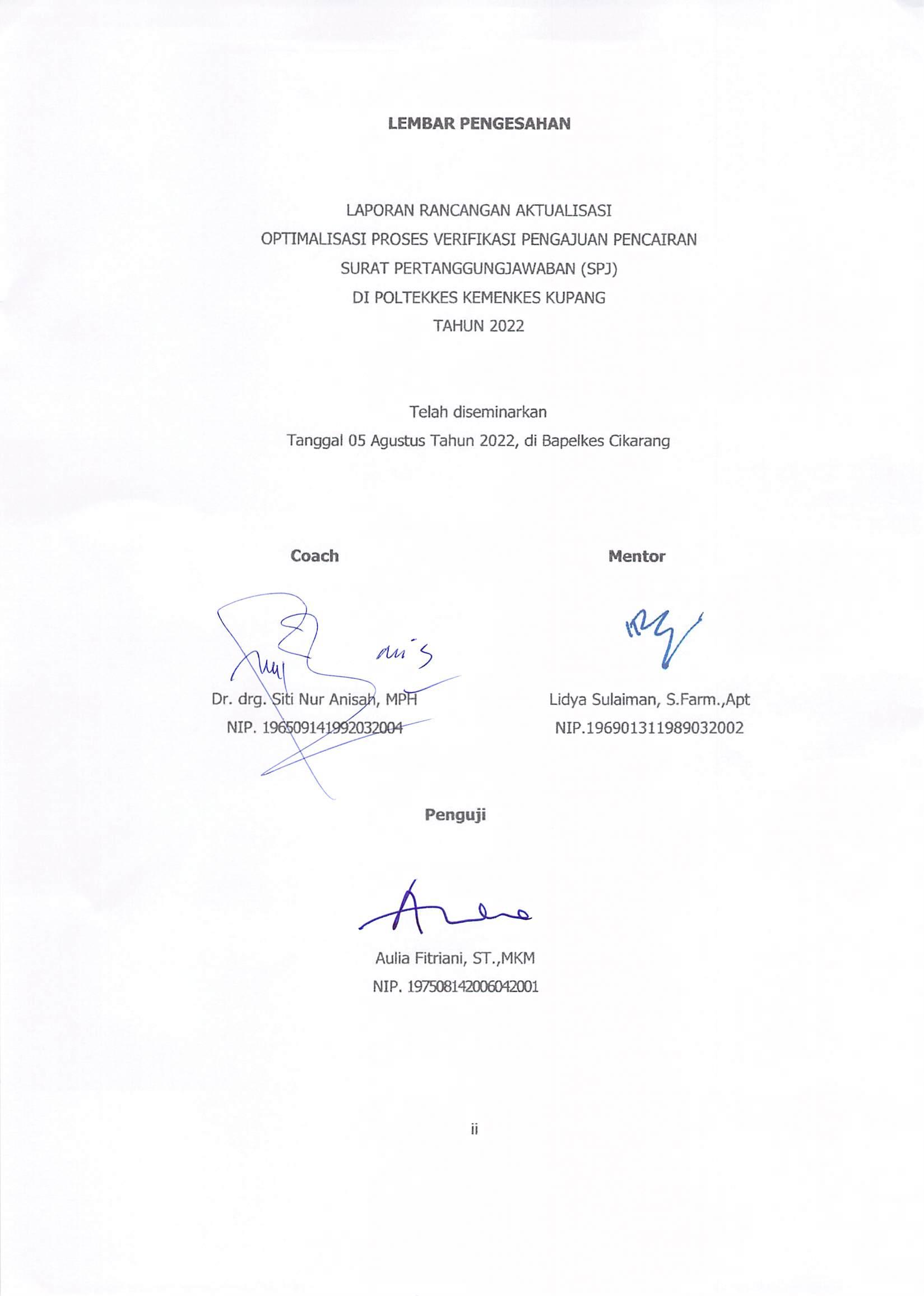 3. Mampu mengoptimalkan proses verifikasi pengajuan pencairan surat pertanggungjawaban (SPJ) di Poltekkes Kemenkes Kupang