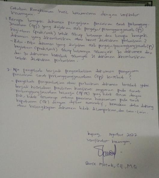 penolakan/pengembalian oleh verifikator keuangan setelah buku