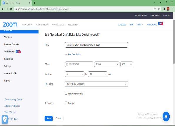 Kesulitan Pada saat proses pembuatan link zoom meeting dan undangan sosialisasi draftbuku saku digital (e-book).