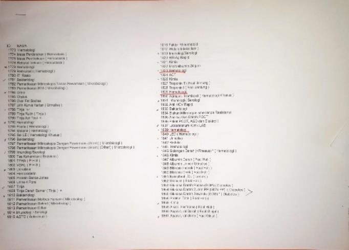 “Ketidaksesuaian penginputan permintaan pemeriksaan laboratorium dengan pemeriksaan yang akan dilakukan.” Ketidaksesuaian penginputan salah satunya disebabkan karena banyaknya jenis pemeriksaan laboratorium yang tertera pada layar