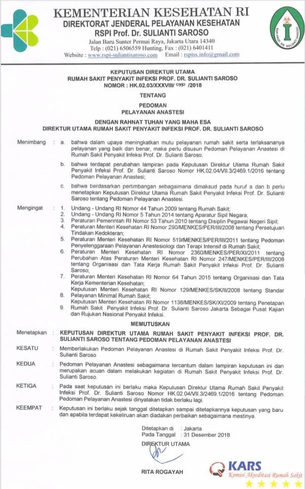 akan digunakan di IBS RSPI Prof. Dr. Sulianti Saroso, termasuk melakukan revisi apabila diperlukan dalam proses pengesahan di kemudian hari.