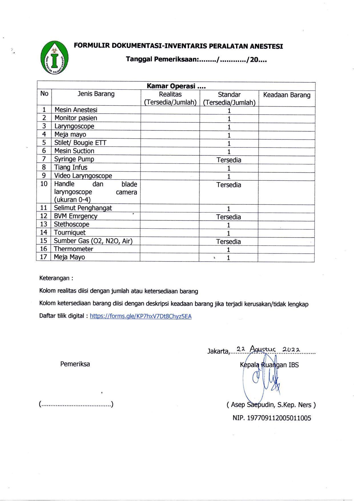 Link e-formulir dokumentasiinventaris peralatan anestesi