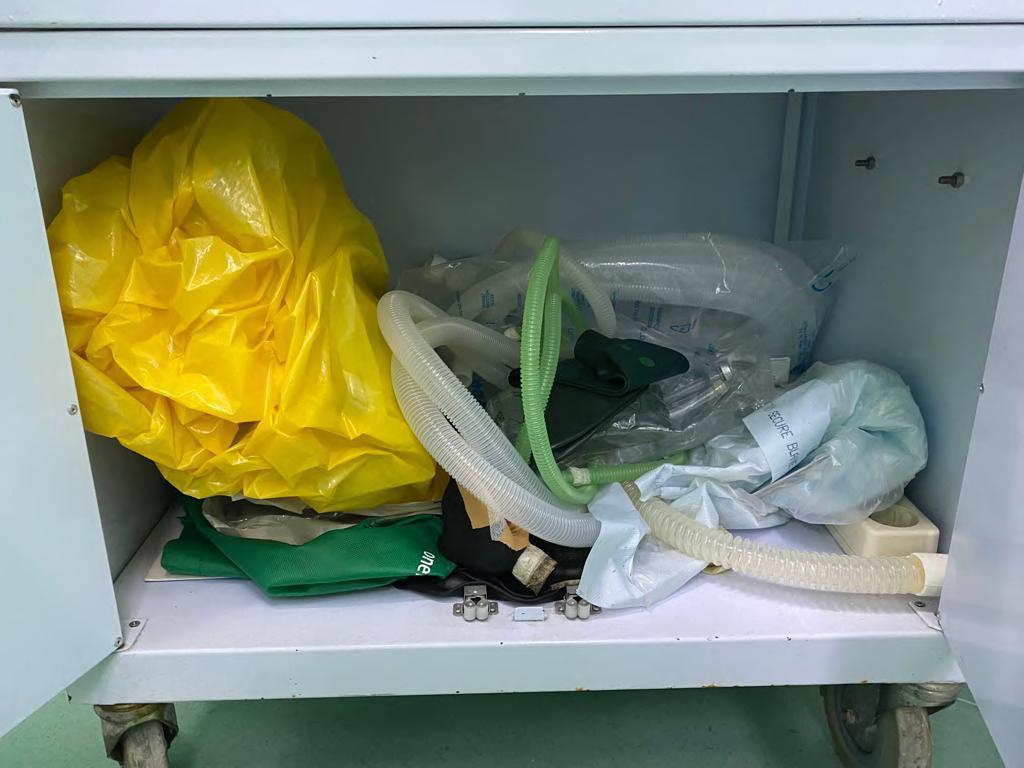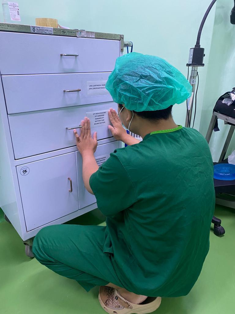 Penataan ulang dan pelabelan peralatan anestesi di kamar operasi.