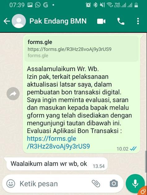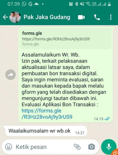 Kegiatan IV. Pelaksanaan evaluasi penggunaan bon transaksi berbasis digital. (6 - 12 Sept 2022)