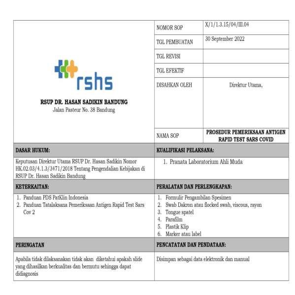 4 Membuat SOP Pemeriksaan Swab Antigen sesuai TAT