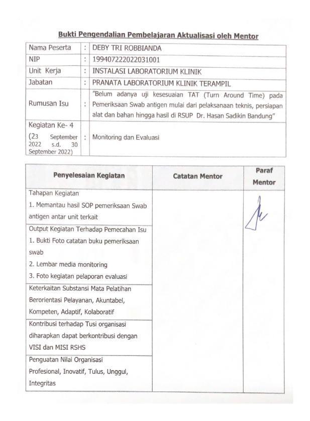 masukan dan saran dari mentor dan koordinator di unit kerja