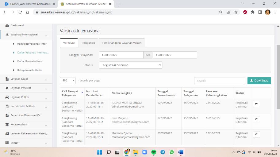 Daftar penggunaan pendaftaran onlien vaksinasi internasional