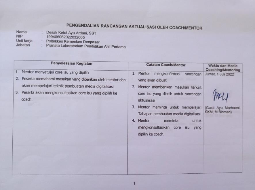 2. Dokumentasi Pengendalian Rancangan Aktualisasi oleh Mentor.................................39