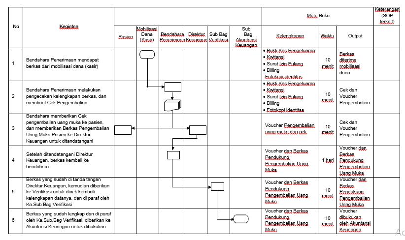 kepada pasien atas keberhasilan pengembalian uang muka Tahapan Output