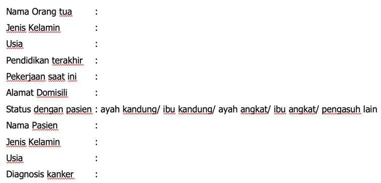 Status dengan pasien : ayah kandung/ ibu kandung/ ayah angkat/ ibu angkat/ pengasuh lain
