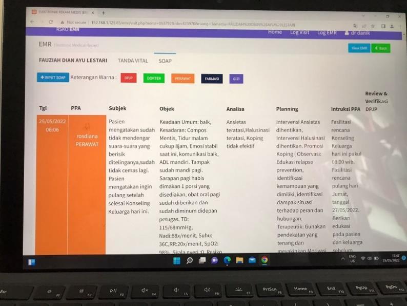 Foto observasi saat format buku operan jaga yang baru diaplikasikan.