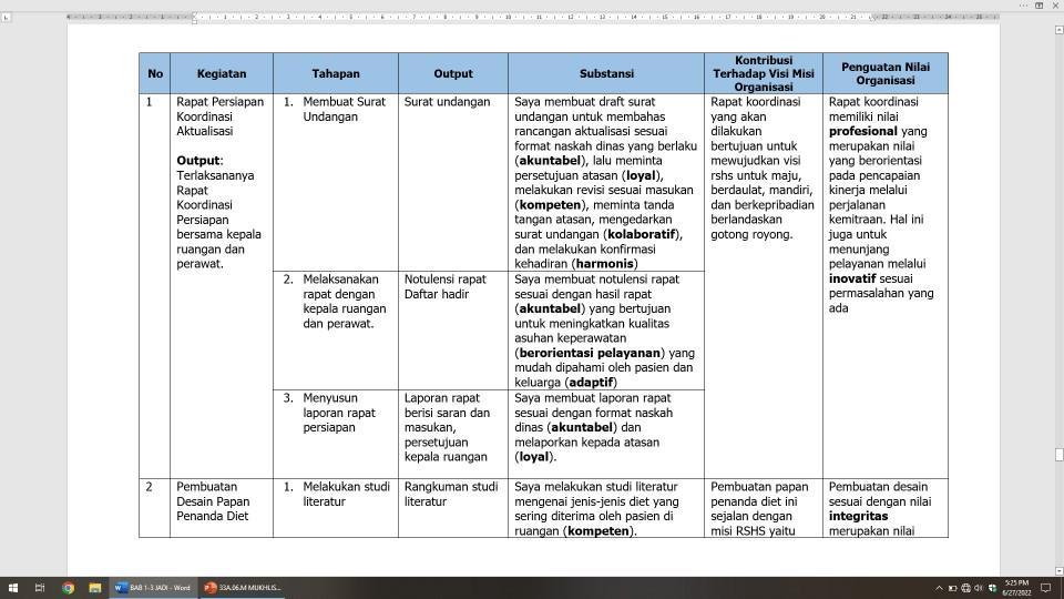 1 Penyampaian kegiatan aktualisasi terhadap