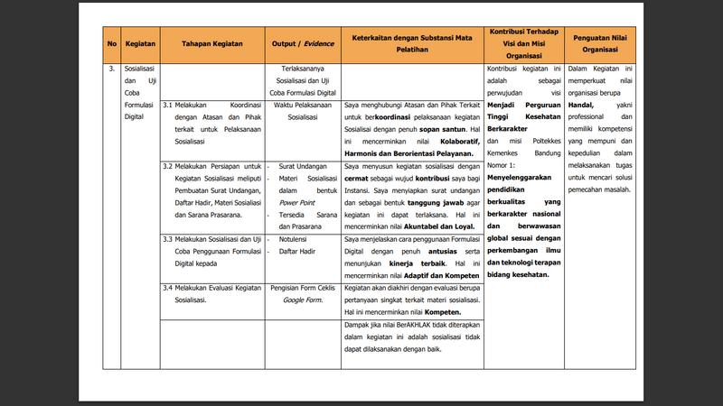 Evaluasi Kegiatan dan Penyusunan Laporan Kegiatan Aktualisasi.