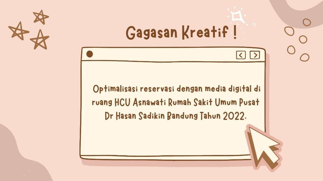 “Optimalisasi Reservasi dengan Media Digital di Ruang HCU Asnawati RSUP Dr Hasan Sadikin Bandung”. Penyusunan laporan aktualisasi ini tidak terlepas dari dukungan, bimbingan dan bantuan dari berbagai pihak. Oleh karena itu, penulis ingin menyampaikan ucapan terima kasih