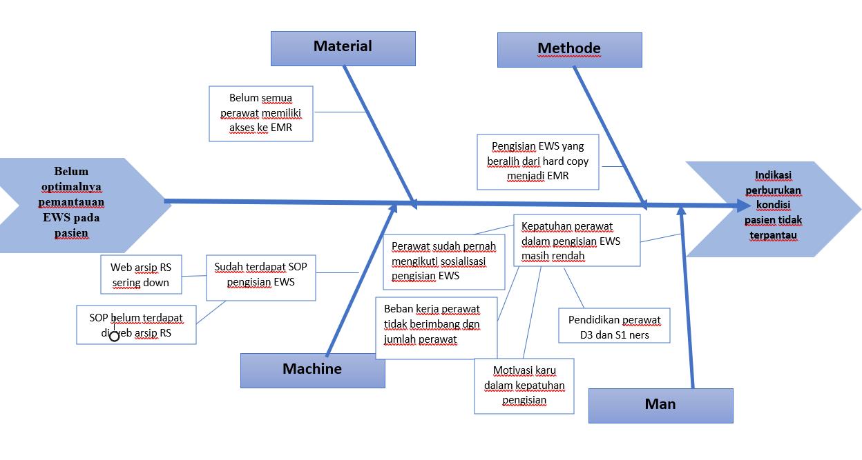 3 pasien yang meninggal tertunda dalam pengisian EWS karena terdapat perubahan sistem dari pengisian manual di formulir menjadi pengisian secara komputerisasi di EMR. Hal ini menjadi sering terlewat karena perawat belum sempat mengakses EMR. Hasil wawancara dengan perawat RIK, dua dari 5 perawat mengatakan jika EWS