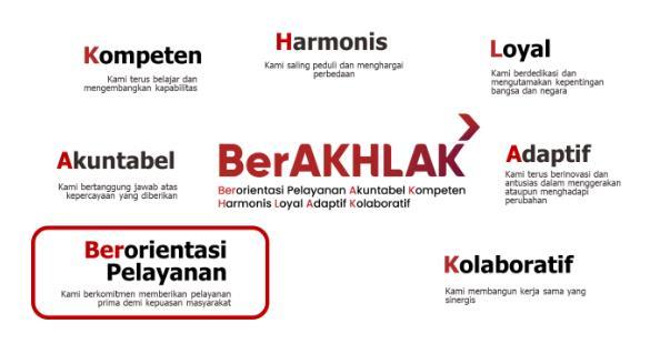(Berorientasi Pelayanan, Akuntabel, Kompeten, Harmonis, Loyal, Adaptif, Kolaboratif).