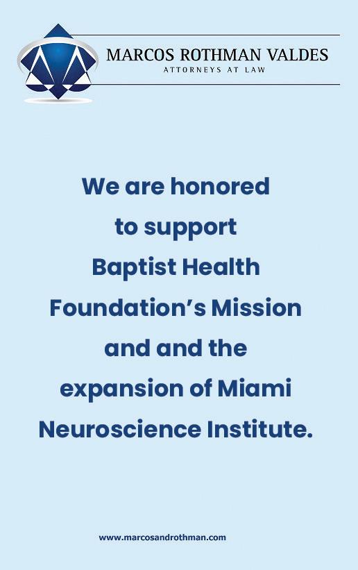 Thank you for joining us for The 2024 Grand Gala. We come together this evening to support Baptist Health Foundation, which serves Baptist Health’s hospitals, institutes, outpatient centers and the many other facilities which provide exceptional healthcare to patients from the Florida Keys to Palm Beach County. Your philanthropic gift to the entity or program you choose helps fund groundbreaking research and clinical trials, state-of-the-art medical technology and innovation, patient support programs, staff education and training, facility enhancements and more. We are committed to providing the highest level of healthcare, and a warm, welcoming, compassionate experience to our patients and their families — and your support of the Gala makes it all possible.