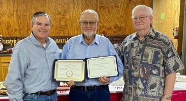 On Sept. 8, Great Plains Association (GPBA) honored Charlie Floyd for 40 years ministry as pastor at Texola, First. GPBA director of missions Danny Ringer, left, presented Floyd a certificate from the Oklahoma Baptist Historical Commission, and former DOM Ralph Chapman presented Floyd with a certificate from the Association.