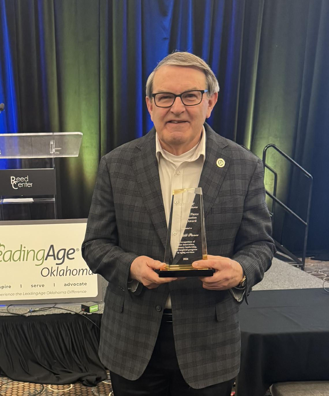 Long-serving President and CEO of Baptist Village Communities (BVC), Dr. Bill Pierce, was recognized with the inaugural Dr. Bill Pierce Transformation in Aging Award at the 2026 LeadingAge Oklahoma Annual Conference. Pierce has served for 35 years, leading BVC through decades of growth and innovation in senior housing and services.