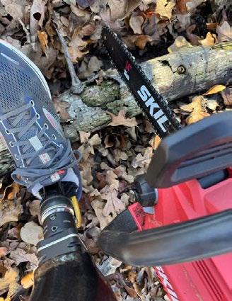 So, I got up. I started on the leaves and found a tree limb buried underneath. I grabbed my chainsaw, and it occurred to me. Here was one of my disabled-turnedspecially-abled glimpses of joy. I used to always be leery of kickback from the chainsaw and my leg.