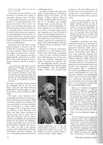 Dwight MacDonald, one of the few acknowledged anarchists in America, speaking at Columbia this spring. Anarchism has become popular among a portion of today's college students.